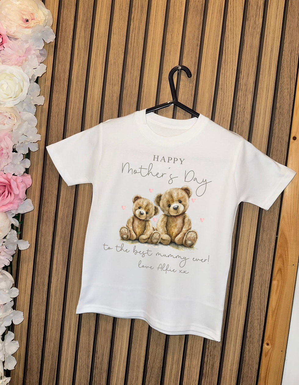 Adorable Mother's Day bear design. Personalised Babygrow/vest/tsh